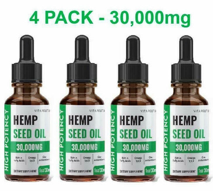 4 Pack - Hemp Oil Drops For Pain Relief, Stress , Anxiety, Sleep - 30,000 mg