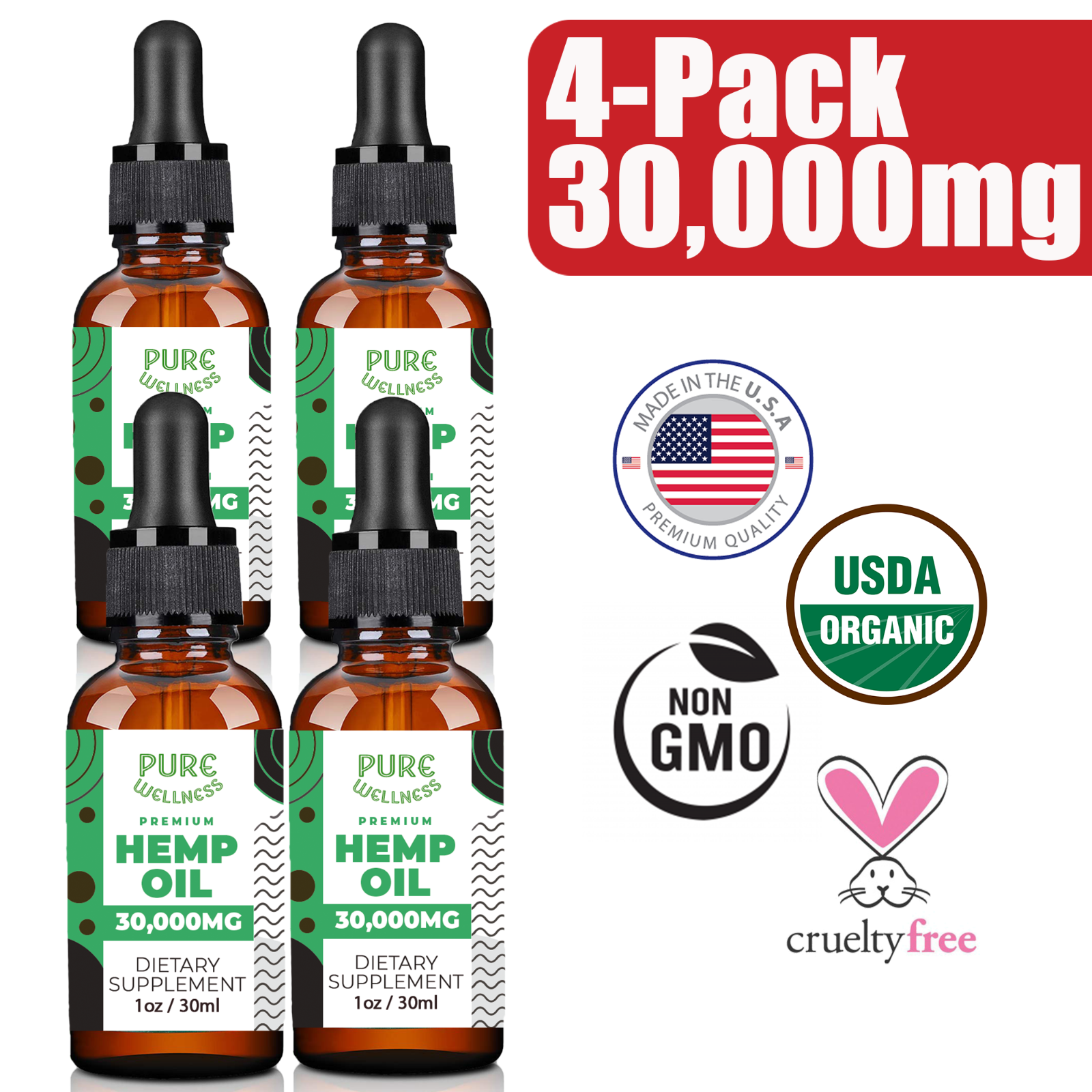 Hemp Seed Oil 30,000mg | Peppermint or Natural Flavored Hemp Oil (4-Pack)